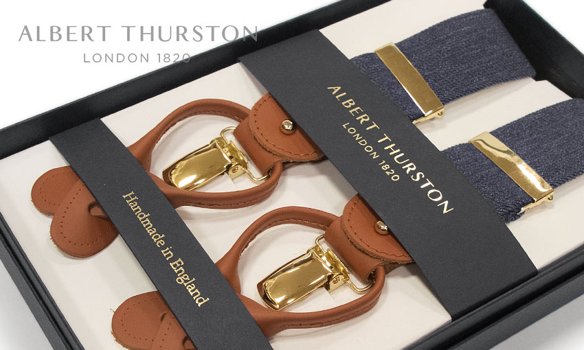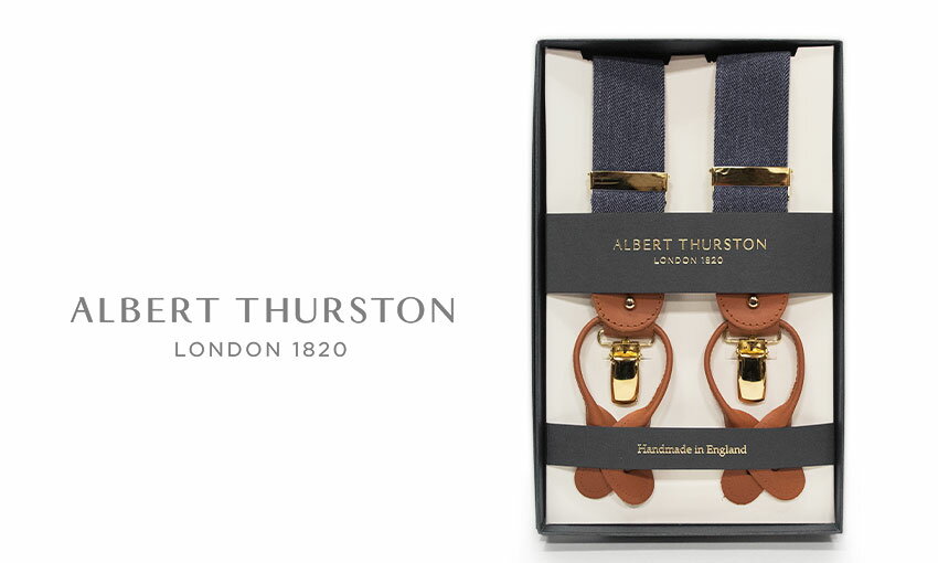 ギフト対応 左の画像をクリックすると拡大表示されます。 色 柄 帯紐 : 杢調ブルー無地 革部 : タンブラウン 金具部 : ゴールド 素 材 ポリエステル / ポリウレタン ( 帯紐は伸縮性があります。) サイズ 帯幅:約35mm 全長:約112cm最長調節時クリップからクリップを測定、そこから自由に短く調節できます。 ※伸縮性がある素材な為、最長調節時(約112cm)より多少伸びます。 仕 様 スラックスへの取り付けは、クリップで挟むタイプと ボタン留めの2ウェイ仕様 ( ボタン付き ) フロントは2箇所、バックは1箇所で留めるタイプです。 3本帯が各々で調整可能ですので、身体にフィットしやすくなっております。 女性の方も着用できます。 生産国 MADE IN ENGLAND イギリス製 ※ パソコンの性質上、実際の色と異なる場合がございます。ご了承ください。 ・仕様等が予告無く変更される場合がございます。予めご了承ください。[ ALBERT THURSTON / アルバートサーストン ] サスペンダー 1820年ロンドンに創設。以来180年以上のあいだ、 一貫してブレイシスを作り続けている。 ブレイシスはズボンを吊り下げるための道具であるが、それ以上に大きな役目がある。 曰く、ズボンとは吊り下げてはくもので、締めつける物ではない。 これは、英国ではいまでも守られているスタイルの一つである。 ALBERT THURSTON ( アルバート・サーストン ) 社はその英国において、 名実と共にNo.1として広く求められている。 ロンドンのメンズショップのプレイシスは、大半がここの商品といえる。 [ 仕様・素材 ] ■ ボタンで留める方法とクリップで挟む方法の2通りの使用ができます。( 2ウエイタイプ ) ■ ボタンは、付属されております。 ■ [ 帯素材 ] ポリエステル / ポリウレタン 伸縮します。 ■ 3本帯が各々で調整可能ですので、身体にフィットしやすくなっております。 ■ 紳士物ですが、長さが調整できますので、女性の方も着用OKです。 MADE IN ENGLAND 売り切れ表示された商品でも、メーカーに在庫がある場合が稀にあります。 お気軽にお問い合わせください。 ※パソコン処理の性質上、実際の色と異なる場合がございます。ご了承ください。