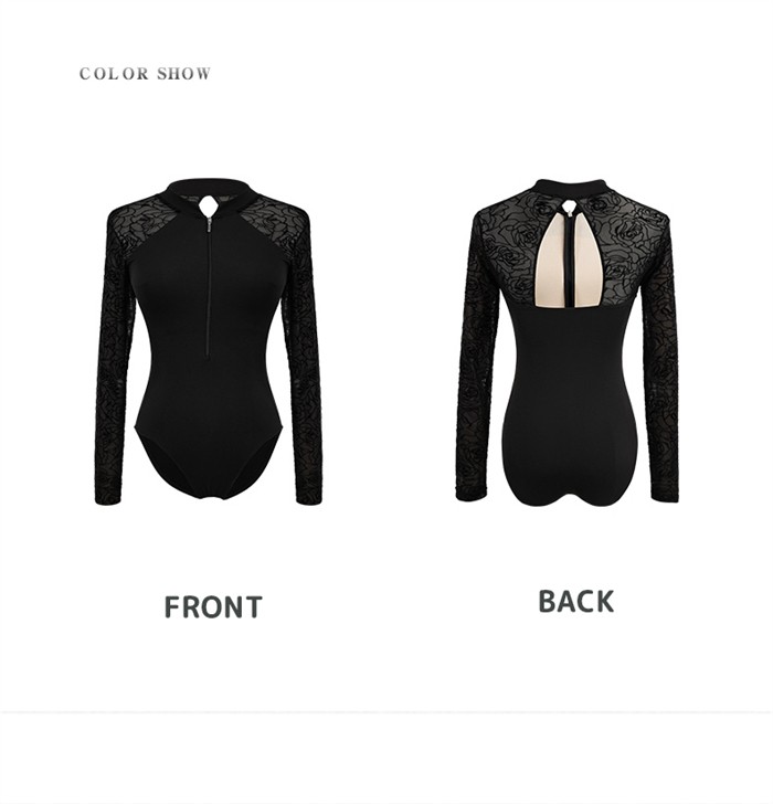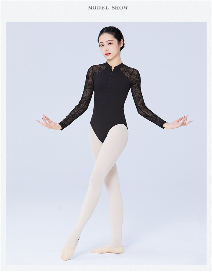 バレエ レオタード 大人 レディース ジュニア 長袖 フロントジップ ジッパー ファスナー オープンバッグ 練習着 黒 パッド付き シンプル おしゃれ 定番 伸縮性 ストレッチ 通気性 レッスン着 バレエ用品 発表会 コンクール 体操 新体操 ブラック