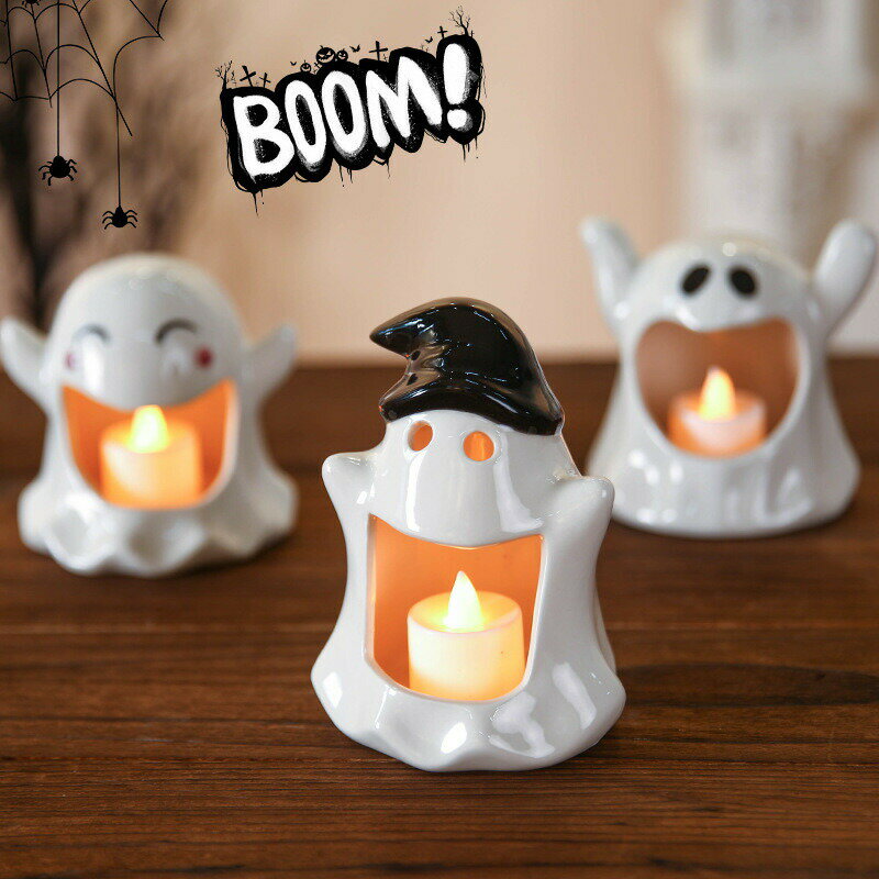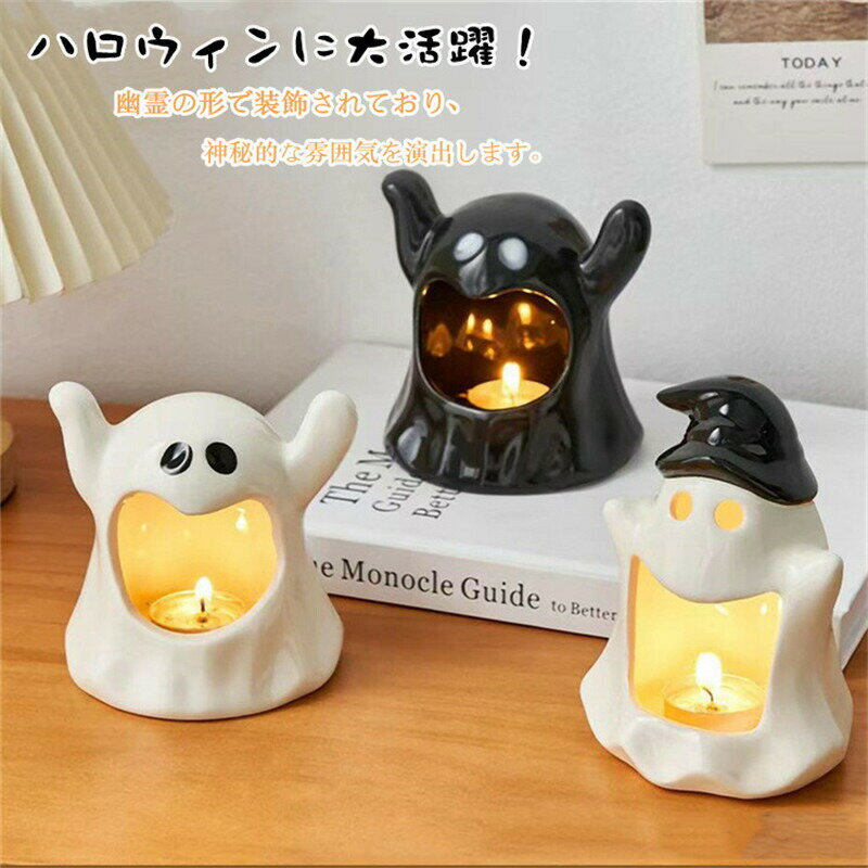 幽霊 燭台 ハロウィン 飾り 置物 2個セット かわいい 白 黒オーナメント アクセサリー キャンドル ホルダー 灰皿 ペン入れ 小物入れ 多機能 プレゼント 部屋飾り 自宅 室内 パーティー デ コレーション おしゃれ ギフト 贈り物 雑貨 インテリア 撮影小道具