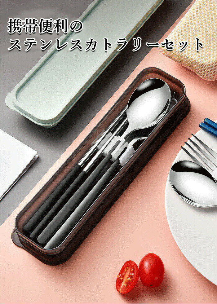 「収納ケース付き」弁当食器 カトラリーセット アウトドア キャンプ 箸 スプーン フォーク 3点セット ステンレス ランチセット 大人 携帯便利 通勤 通学 学生用食器 持ち運び収納ケース