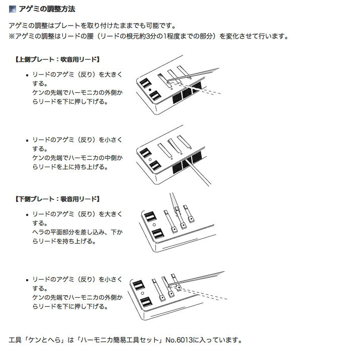 納期がかかる製品です。(最短1ヶ月程度)ご注文後のキャンセルはできませんので御了承のうえご注意下さい。 ?またリードは調整なしで設置できません。微調整は技術を要します。ご返品、ご交換、一切出来かねます。 ? ? トンボ 複音ハーモニカ No.3521 プレミアム21? 21穴の専用リードプレートです。 ? リードプレートにリードが付いた商品です。 リードプレートの交換のみでしたら、同メーカーから発売されているNo.6013のハーモニカ簡易修理工具を使ってご交換が可能ですが、設置後はあげみの調整をし、トレモロの具合などを調整する必要があります。シングルリードのハーモニカに比較し、ダブルリードはさらに難しい調整になります。付け替えれば演奏ができる訳ではありません。知識のある方のご交換をお勧めいたします。 ? TOMBO premium 21 Tremoro Harmonica REED PLATE トンボ 複音ハーモニカ プレミアム21用 リードプレート ■リード楽器 メンテナンス 調整用 リードプレート ■キーラインナップ:長調、短調各12調子 メジャー C調 D調 E調 F調 G調 A調 B調 C♯調 D♯調 F♯調 G♯調 A♯調 マイナー Cm調 Dm調 Em調 Fm調 Gm調 Am調 Bm調 C♯m調 D♯m調 F♯m調 G♯m調 A♯m調※止めネジなどは別売りです。 ご希望の際はお問い合わせ下さい。 ?