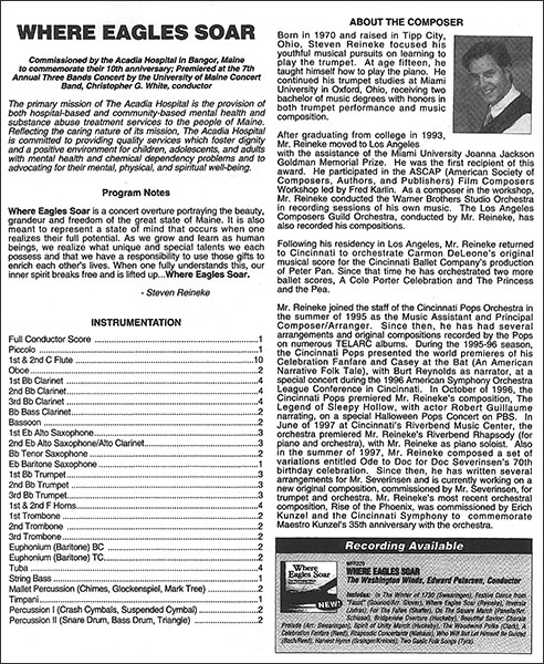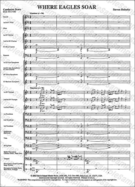 楽譜 ライニキー/鷲が舞うところ(【205527】/012-3313-00/輸入吹奏楽譜(T)/G3.5/T:4:10)