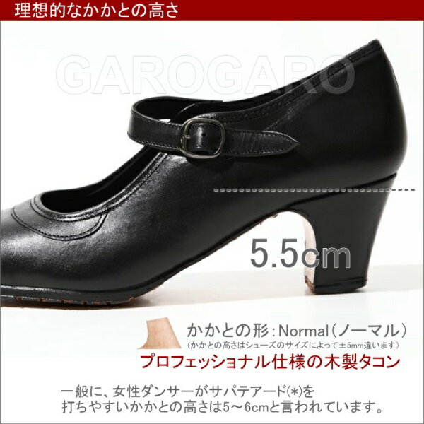 【在庫限り特価】OSUNA プロフェッショナル用フラメンコシューズ 釘あり Piel(表皮) 皮ベルト 黒 サイズ:40(約26.0cm) タコン:5.5cm ゆったり幅[フラメンコ用][スペイン直輸入]