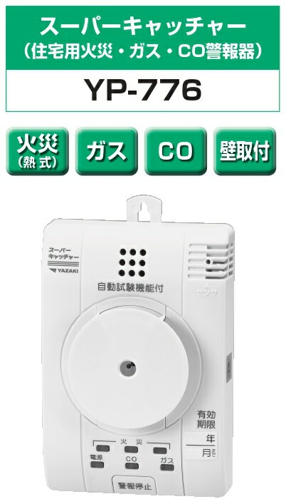 矢崎エナジーシステム YP-776 スーパーキャッチャー 住宅用火災 都市ガス 音声型 CO警報器 壁掛式 熱検知式 100Vタイプ