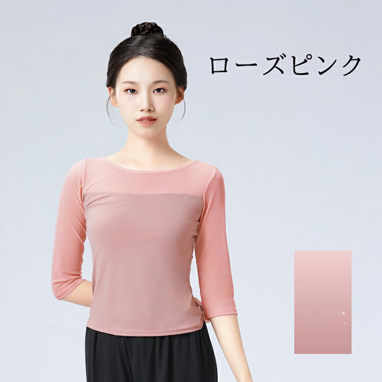 バレエ トップス 大人 7分袖 ストレッチメッシュ 大人 レッスン着 バレエ ウェア ダンス ウェア ヨガ フィットネス シースルー ストレッチ バレエウェア ダンス ヨガウェア レディース 大人バレエ バレエ用品 新体操 ダンス衣装 エレガント 美シルエット