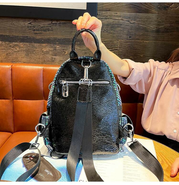 2色 リュックサック バックパック ショルダーバッグ デニム スパンコール キラキラ レディース 大容量 縦型 A4 ジッパー ファスナー 黒 緑 シルバー ブルー かっこ カジュアル お洒落 銀