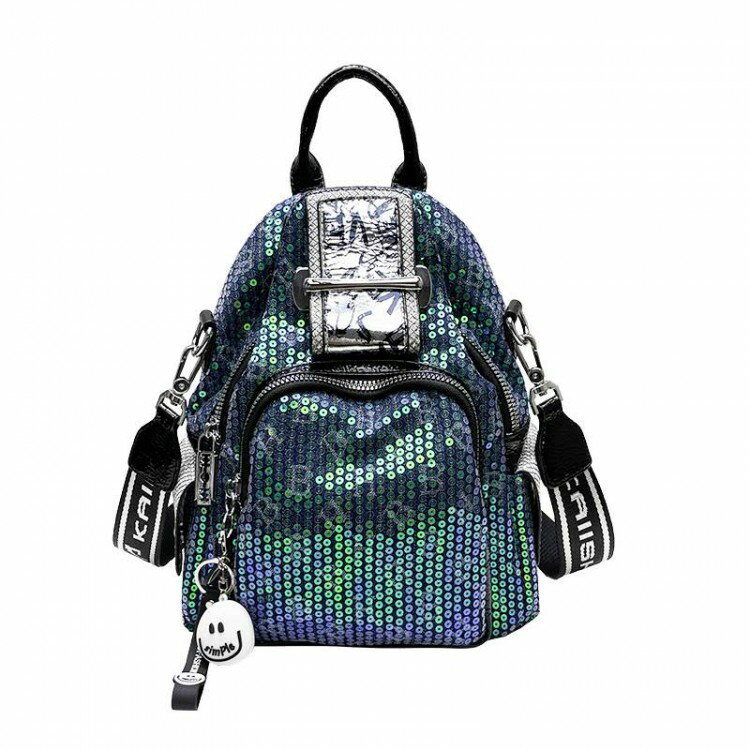 ストラップ付きでショルダーバッグとしても使えるリュックキラキラと輝くスパンコールがおしゃれで存在感のアイテムです◎スマイルのチャームもキュートなポイント♪【カラー】シルバー×ブルー、ブラック×グリーン【サイズ】ワンサイズ開口部:18cm横幅:22cm高さ:29cmマチ:9cmストラップ:100cm1〜3cmの誤差がある場合がございます。2色 リュックサック バックパック シ バッグ 小物 ブランド雑貨 続々登場 シルバー×ブルー ブラック×グリーン