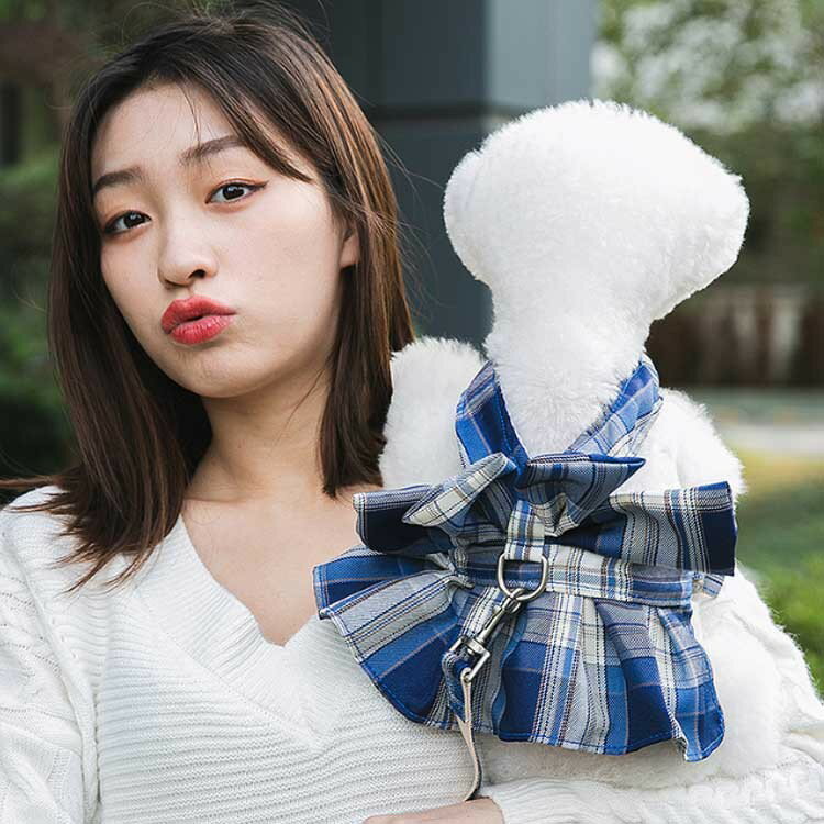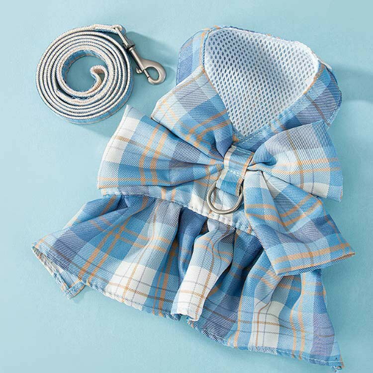 犬服 ドッグウエア ハーネス 猫服 リード 小型犬 可愛い チェック柄 ペット服 お散歩 お出かけ 通気性 牽引ロープ サイズ調節可能 簡単着脱