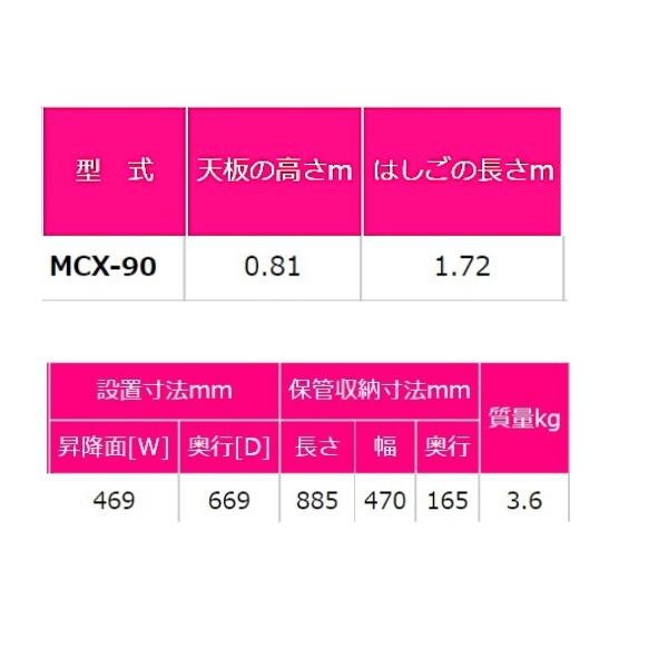 【法人限定】ご注文・配送先も法人名(企業名)でお願いします 【沖縄・離島 別送料】ご注文後こちらからご連絡致します 【メーカー直送】お客様都合による返品交換はできません ※画像は代表画像です。ご購入前に仕様をご確認下さい。 ■メーカー:株式会社 ピカ コーポレイション ■商品名:はしご兼用脚立 ■型式:MCX-90 ■最大使用質量:100kg ■天板の高さ:0.81 ■はしごの長さ:1.72 ■設置寸法(mm):【昇降面(W)469】【奥行(D)669】 ■保管寸法(mm):【長さ885】【幅470】【奥行165】 ■質量(kg):3.6 ・踏ざん幅55mmと広く、昇降しやすく作業性に優れています ■JAN:4989247191022 ■管理コード:TA280 ※画像をクリックして詳細をご確認くださいピカ はしご兼用脚立 スタンダードタイプ MCX-90 3尺 2