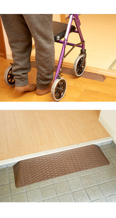【商品説明】 ●小さな段差によるつまづきを防止。屋内・屋外兼用のミニスロープです。 ●勾配は14度。 ●傷つきにくい素材で、屋内から屋外まで広範囲に使用できます。 ●家を調和する色、素材独自のフロントラウンド形状でのりあげ楽らく。 ●滑りにくい、ズレにくい、サイド面はなだらかな形状。 ●汚れがつきにくく掃除しやすい。 ●乗り込み口は緩やかな孤形(フロントラウンド)。 ●サイズ/幅76×奥行12.1×高さ3.0cm ●材質/PVC(塩化ビニール) ●生産国/中国 広告文責:NO1元気爽快 (042-843-2703)