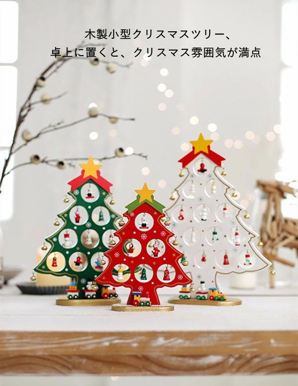 イ クリスマスデコレーション 雰囲気満々 DIY ミニツリー テーブル コンパクト 小型 飾り 卓上 木製 北欧 おしゃれ 3color 卓上