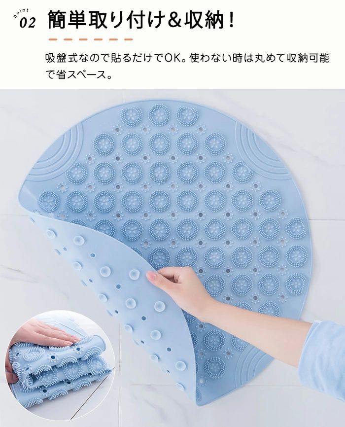 洗 防臭 安全 入浴補助 折り畳める 浴槽マット 浴室マット 吸盤式 壁掛け 吸盤固定 丸形 カーペット 滑り止めマット バスマット