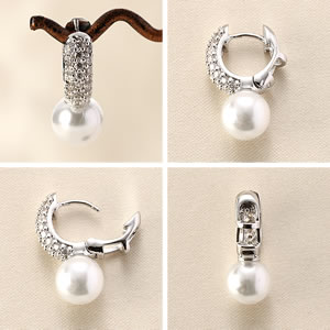 キュービックジルコニア ジュエリー&パールエレガントフープフピアス8mm|プレゼント|ギフト|pierce|真珠|アクセサリー|