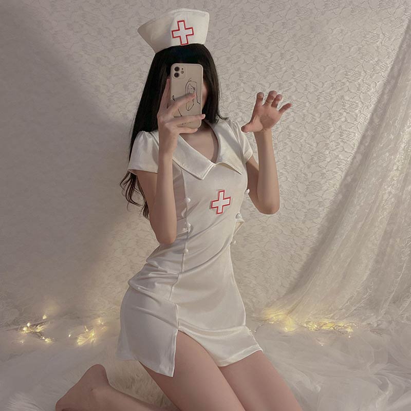 ハロウィン 看護婦 黒 白 帽子+ワンピース+首飾りコスプレ M L ナース服 白衣 女医 看護婦 医者 ゾンビ 血 ドクター 制服 ナースキャップ ミニスカート セクシー コスチューム ハロウィン 衣装 仮装 cosplay costume Halloweenグローリーパーク