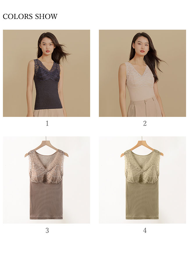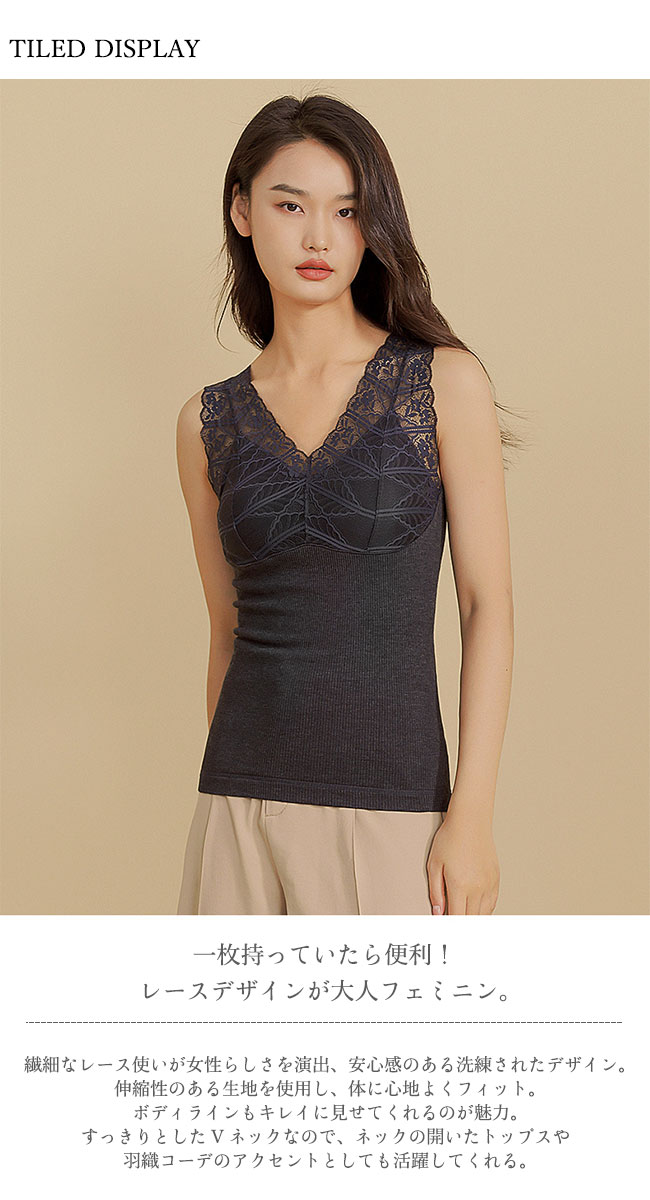 商品詳細 ●繊細なレース使いが女性らしさを演出、安心感のある洗練されたデザイン。 ●伸縮性のある生地を使用し、体に心地よくフィット。ボディラインもキレイに見せてくれるのが魅力。 ●すっきりとしたVネックなので、ネックの開いたトップスや羽織コーデのアクセントとしても活躍してくれる。 ★おすすめポイント★ 《1》カップ付きインナーはワイヤーもなく、締め付け感がなく着心地◎。 《2》レイヤードコーデのインナーとしてなど、幅広いスタイリングに活躍してくれる。 《3》合わせやすい無地のカラバリで、フェミニンからカジュアルまで、ジャンル問わず大活躍。 SPEC カラー:色1‐4 素材 混紡 サイズ明細: F【cm】バスト80‐100 適応体重45‐65kg 適応身長150‐175 ご注意:※素人採寸ですので、若干の誤差がございます、ご了承ください。 中国製 made in China 知っておいて頂きたいこと ※濡れたままの放置や長時間の浸漬はしないで下さい。 ※汗や雨で湿った状態では特に、注意が必要です。淡い色の衣類?バッグ等を一緒に使用される際にもご注意下さい。 ※平らな面に置いて測定しておりますので、実際に着用されるとサイズが異なる場合がございますが、予めご了承下さい。 ※画面上の色はブラウザや設定により、実物とは異なる場合があります。ご了承の上ご注文下さい。 送料について ネコポス→全国一律送料無料 ■宅配便で3980円以上のお買い上げで送料無料 ※離島・一部地域は追加送料がかかる場合があります。 ※北海道追加送料:400円 九州地方追加送料:300円 沖縄県追加送料:700円■繊細なレース使いが女性らしさを演出、安心感のある洗練されたデザイン。 ●伸縮性のある生地を使用し、体に心地よくフィット。ボディラインもキレイに見せてくれるのが魅力。 ●すっきりとしたVネックなので、ネックの開いたトップスや羽織コーデのアクセントとしても活躍してくれる。 ★おすすめポイント★ 《1》カップ付きインナーはワイヤーもなく、締め付け感がなく着心地◎。 《2》レイヤードコーデのインナーとしてなど、幅広いスタイリングに活躍してくれる。 《3》合わせやすい無地のカラバリで、フェミニンからカジュアルまで、ジャンル問わず大活躍。