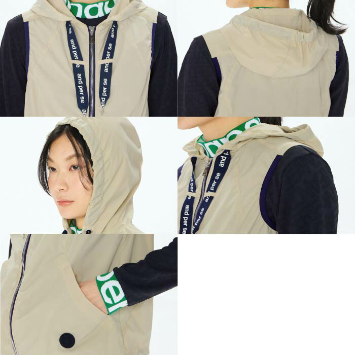 【30%OFF SALE】and per se アンパスィ ゴルフウェア レディース ストレッチタフタフーディーベスト 撥水 軽量 UV機能 afs1005g5 春夏 2025