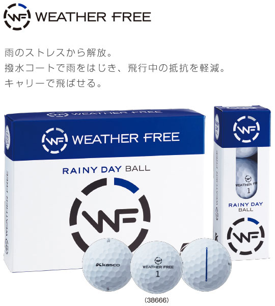 Kasco WEATHER FREE GOLF ゴルフ おすすめ オススメ ボール ゴルフボール 1ダース 12球 12個 球 日本製 2コア 1カバー 雨 撥水 露 白 ホワイト ユニセック 男女兼用 男性 メンズ 女性 レディース 38666構造 2コア+1カバー 対象 ユニセックス 製造国 日本