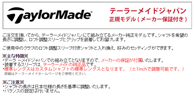 納期はご注文から約4週間後になります。 その他のご注意事項 ・ヘッド付属しません ・メーカー カスタムオーダー商品ですのでご注文後のキャンセルはできません。 ・代金は先払いとさせていただきます。 ・受注発注のため多少の誤差が生じます。 ・在庫の状況によって納期が遅れる場合があります。 ・混雑時には多少お時間をいただく場合があります。 ・メーカーにパーツ在庫が欠品している場合は入荷後の納期となります。