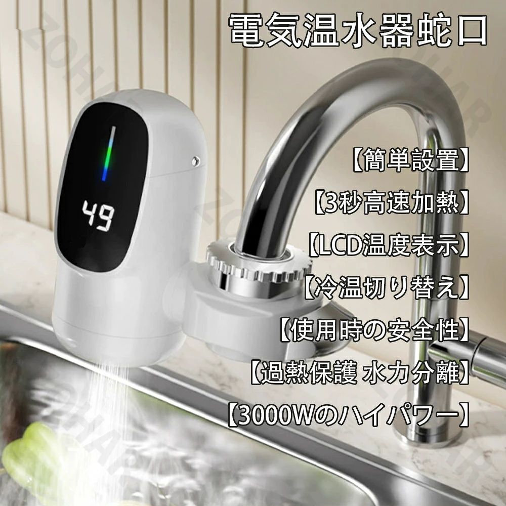 商品情報メーカー希望小売価格メーカー希望小売価格はメーカーサイトに基づいて掲載しています電気式蛇口 電気給湯器 小型 電気温水器 ヒーター 電気水栓 3秒の速熱 3000W LEDデ イ付き 温かい 冷温切り替え 蛇口温水ヒーター 家庭用温水器 電気温水ヒーター インスタント 水温30℃〜60℃ 電気温水器 電気温水蛇口 簡単に設置できる 洗い物 バスルームキッチン用 電気式温水蛇口 蛇口電気給湯器 ヒーター 電気水栓 3秒間急速に加熱し LEDデ イ付き 温かい 冷温切り替え 電気温水ヒーター シャワー 浴室 インスタント 水温30℃〜60℃ 3秒高速加熱電気蛇口:すぐにお湯が使えます。30°C〜60°Cの多段階温度設定で、さまざまなお湯のニーズに対応。高出力設計:3000W / 110V/60HZの電圧で、冬でも迅速にお湯を供給します。 電気との安全な分離:水と電気の安全な分離設計、内蔵の電源保護ウォール、多重の安全装置が搭載されています。四季に対応:冷水とお湯の両方に対応し、冬でも速やかにお湯を供給します。簡単な取り付け:古い蛇口を取り外す必要はなく、工具も不要です。この3秒速熱電龍頭は家庭での必需品で、いつでも安全で迅速なお湯を楽しむことができます。 5