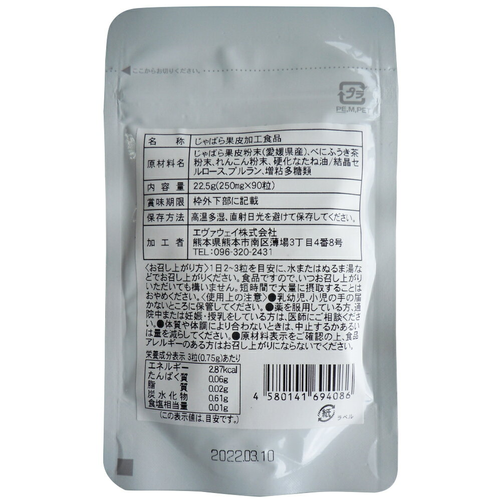 爽快 じゃばらの粒 90粒 【タブレット】(約1ヶ月分) |ジャバラ|邪払|フラボノイドの一種 ナリルチン|べにふうき|れんこん|じゃばら果皮粉末、緑茶、レンコン粉末を配合したサプリメント|直送