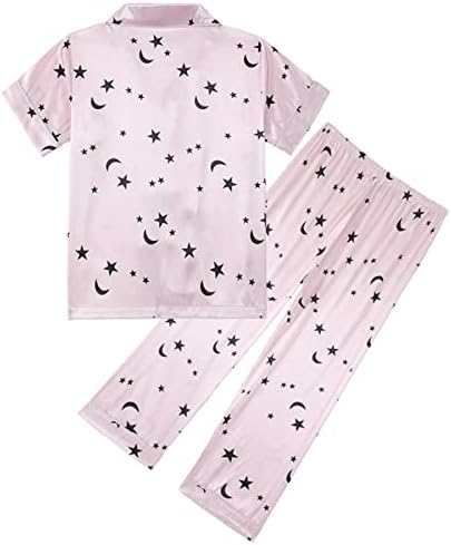 パジャマ キッズ 夏 秋 半袖 子供パジャマ 女の子 サテン ロングパンツ 上下セット 星月柄 部屋着 春 夏 肌触りがいい 寝間着 部屋着 セットアップ ナイトウェア 子供服