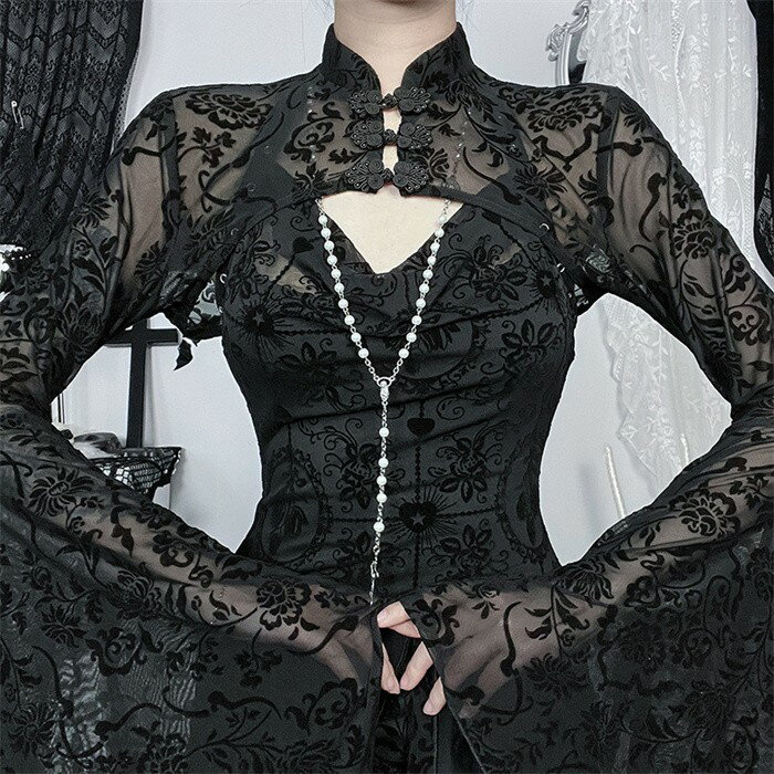 ゴシック ロリータ トップス ブラック 黒 ゴスロリ パンク ロック 悪魔風 ウィッチ風 レースボレロ ロリータシャツ ビジュアル系 ヴィジュアル系 V系 ダーク レディース ドレス チュニック ライブ 舞台 ステージ衣装 コスプレ イベント服 ハロウィン 仮装 la053x1x1lc