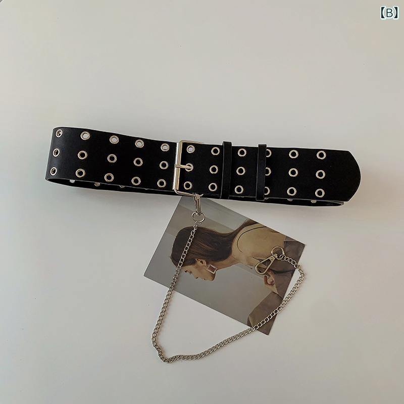 ベルト レディース 太 ウエストマーク おしゃれ ガードル ワイド フルボディ ヒップホップ ドレス メタル チェーン ブラック