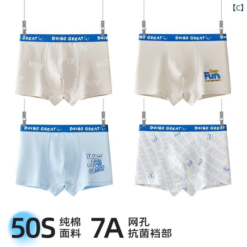 キッズ 下着 男の子 ボクサー ブリーフ パンツ 肌着 アンダーウェア 子供 ティーンエイジャー 綿 ホワイト ブルー ベージュ
