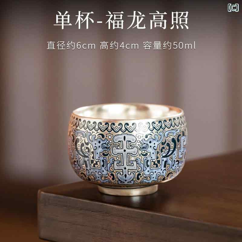 茶器セット 中国風 陶器製 99.9%純銀 銀細工 金銀装飾 レトロモダン ライトラグジュアリー 上質 高級感 急須 湯呑み 2人用 オフィス 来客用 おもてなし