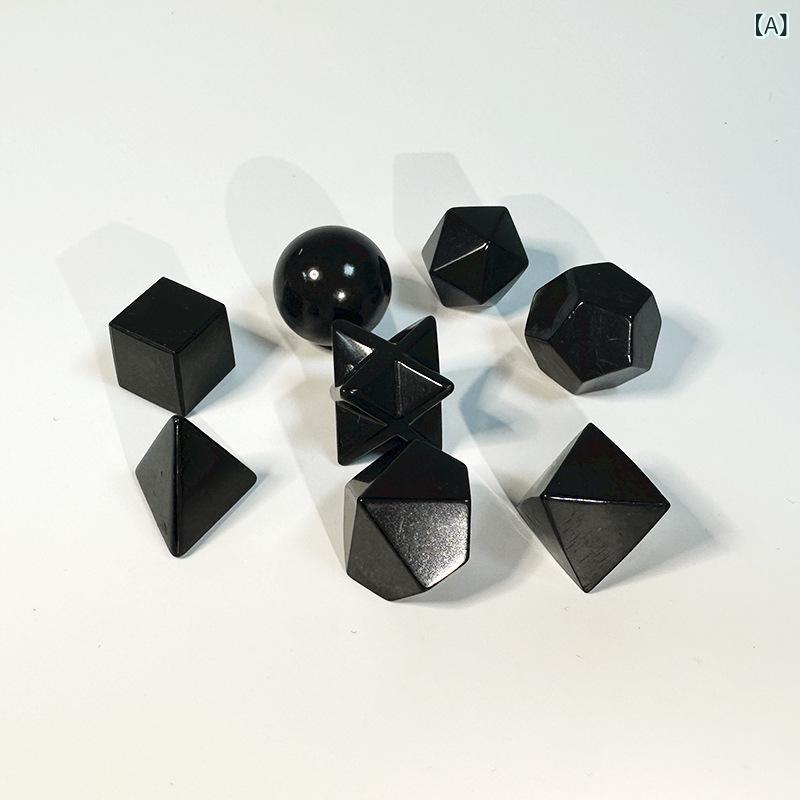 天然石 置物 ロシア産 シュンガイト メルカバ 立体 幾何学模様 宝石 水晶 ブラック 8点セット 瞑想 ヒーリング インテリア オブジェ 飾り