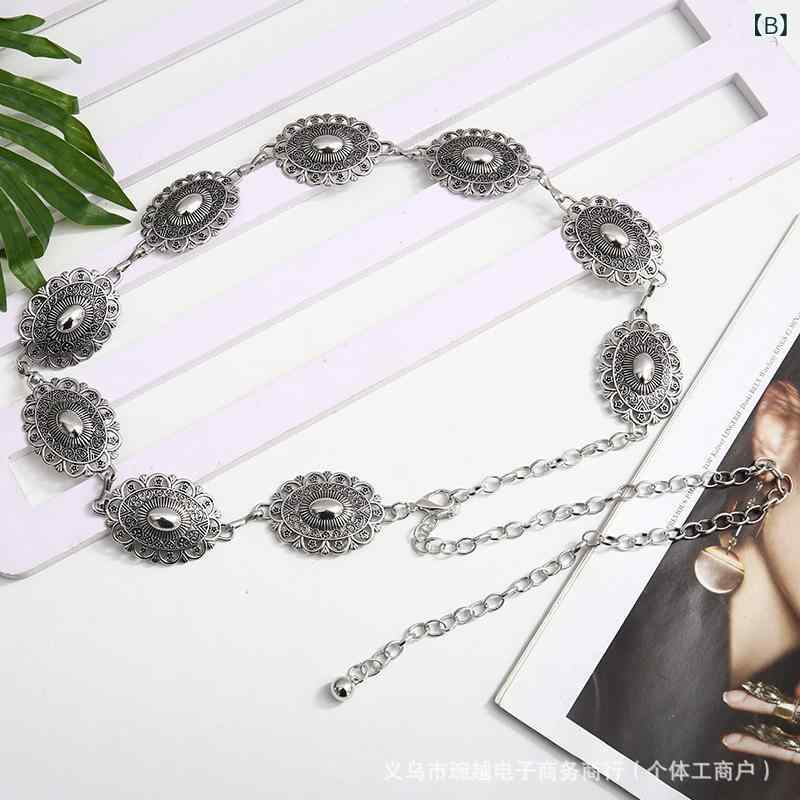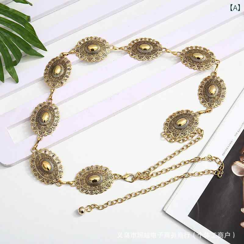 ベルト レディース アンティーク調 彫刻 金属製 ワイドベルト エスニック 民族調 ウエストチェーン ワンピース用 ドレス カジュアル フォーマル 着回し アンティークゴールド アンティークシルバー