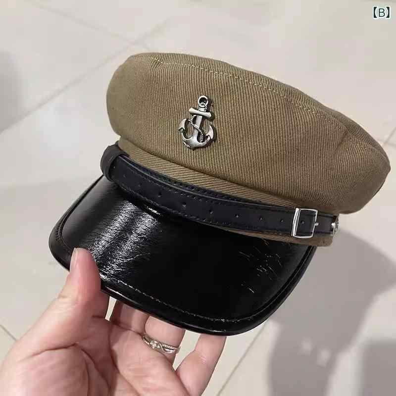 キャスケット 男女兼用 春 秋 ブリティッシュ レトロ ヴィンテージ コットン PUレザー 異素材ミックス フラットトップ ショートブリム おしゃれ カジュアル 普段使い ブラック ブラウン ベージュ