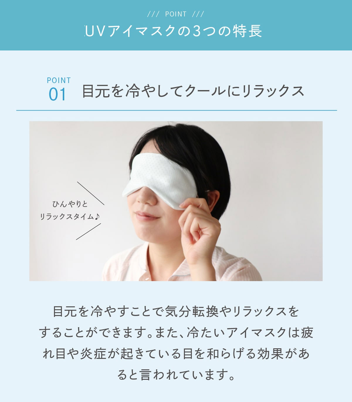 メーカー希望小売価格はメーカー商品タグに基づいて掲載しています 日本製 国産 冷感 アイマスク 高品質 ブランド 安眠 快眠 睡眠 冷たい 接触冷感 繰り返し 使える クール 旅行 出張 トラベル アウトドア リラックス プレゼント ギフト 調剤薬局 薬局 ドラッグストア 薬剤師 おすすめ ブランド 商品商品名 ひんやり冷却アイマスク サイズ FREE(約18cm×9cm)※長さは1~2cmの誤差がある場合があります カラー 薄サックス 素材 生地:ポリエチレン50%、ポリエステル50% 生産地 日本 注意 ※当製品は遮光を目的とした製品ではありませんのでご注意ください。