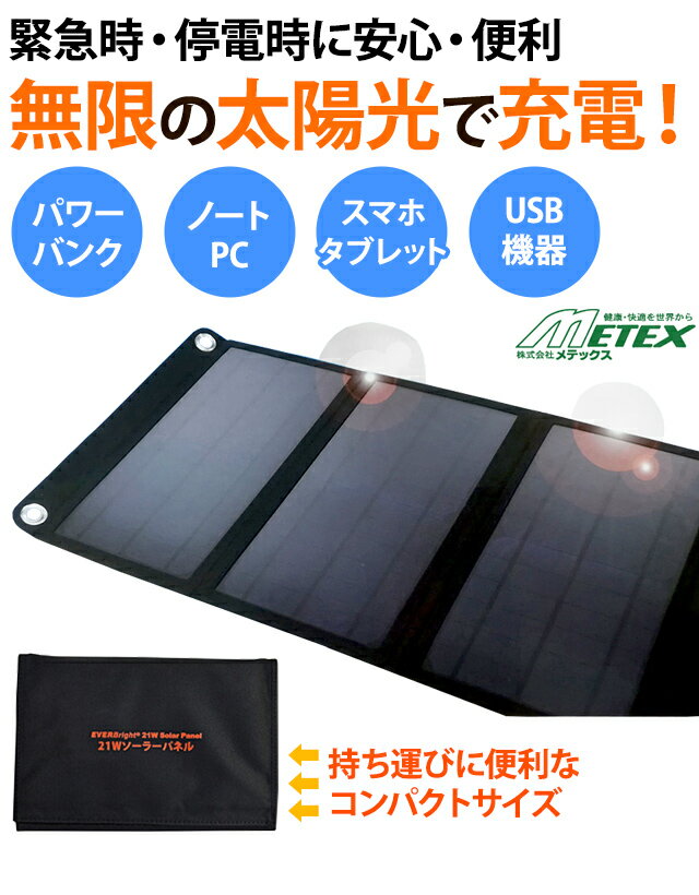 ソーラー充電パネル 小型 太陽光充電 折り畳み式 コンパクトサイズ カラビナ付き 防災 EVERBright エバーブライト 21Wソーラーパネル SSBSP-21W(me0a014)
