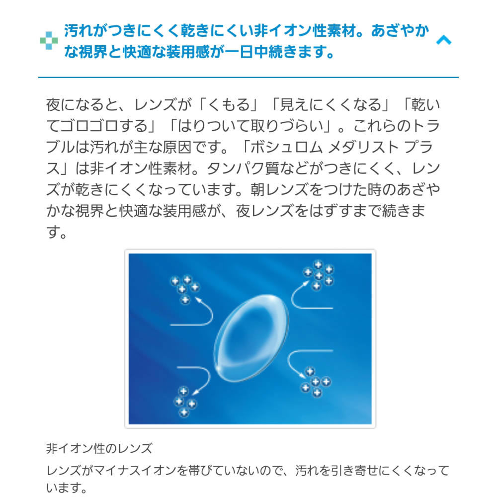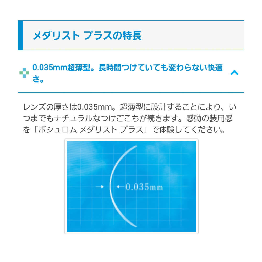 [ 商品詳細 ]商品名メダリストプラス 6箱装用期間2週間使い捨てBC(ベースカーブ)8.7/9.0mmDIA(レンズ直径)14.0mm製造国アイルランド等販売元ボシュロム・ジャパン株式会社医療機器承認番号21700BZY00019000 代表カラー透明区分高度管理医療機器高度医療機器販売業許可番号印旛保 第0625号広告文責株式会社Grand prix〒289-1115千葉県八街市八街ほ1032番地26043-497-3389