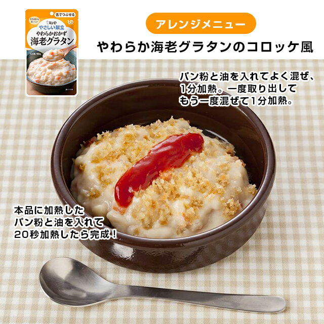【スーパーSALE限定 ポイントUP!】Y3-40 キューピー やさしい献立 やわらかおかず 海老グラタン 介護食 時短 非常時 災害時 歯の治療 体調不良 長期保存 便利 手軽 ストック ローリングストック 常温保存 そのままでもおいしい 舌でつぶせる