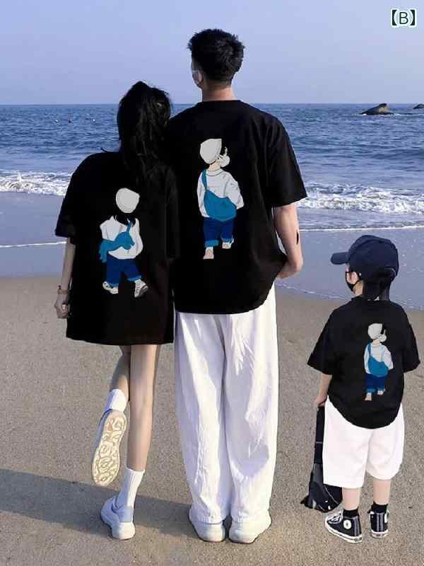 ペアルック 親子 カジュアル コーデ 3人 家族または 4人 家族用の 異なる 親子 服 Tシャツ 半袖 2025 男の子と 女の子 夏服