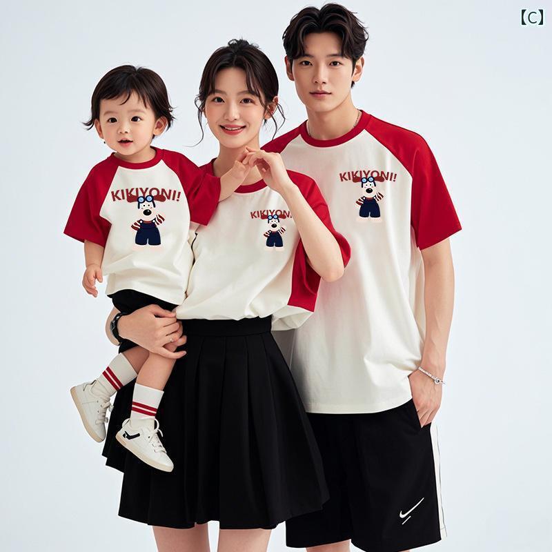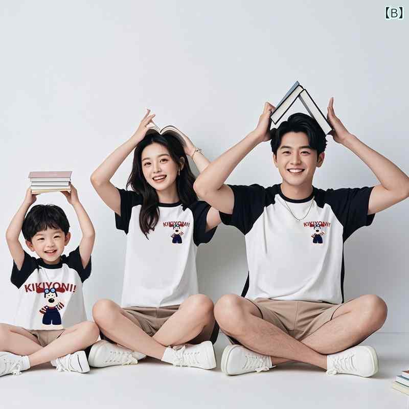 お揃い ファッション コーデ ペアルック カジュアル 2025年 3人または 4人 家族向け 親子 服 Tシャツ な 半袖 コットン 母子 母 娘 ジャンプスーツ