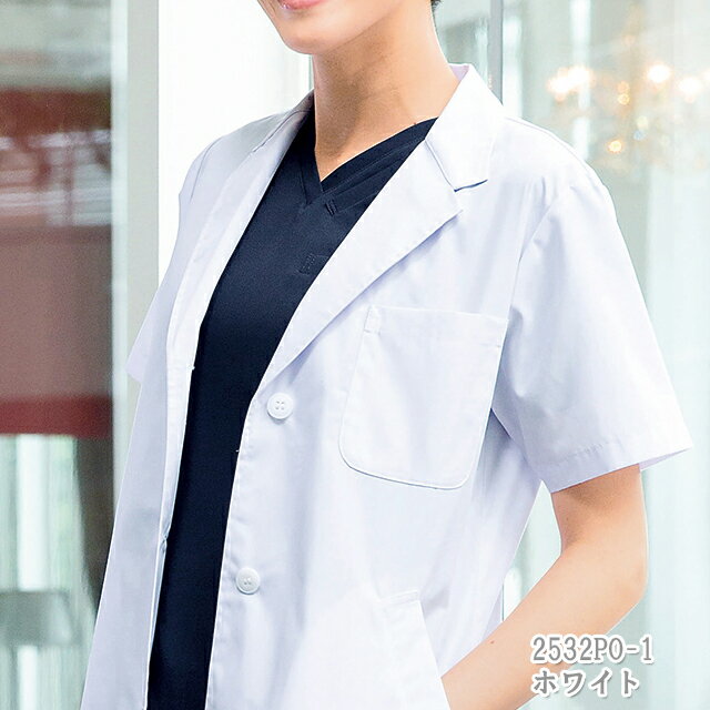 2532PO フォーク 診察衣 半袖 シングルボタン 女性用 スタイリッシュ ペン差し付き ポケット付き 工業洗濯可 FOLK 医療 医者 医師 女医 薬局衣 薬剤師 ドクター レディース レディス ドクターコート 白衣 大きいサイズ 4L ホワイト 白