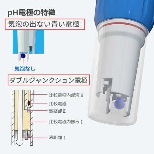 型番 HJ-PH60-Z 商品説明 Bluetoothを搭載し、測定データの管理や共有を簡単に行うことができるpH計です。現場でpHと温度を測定した後、スマートフォンやタブレット(Android・iOS対応)でデータを受け取り、PCにCSV形式で記録を送信できます。測定中の値を固定できるHOLD機能や、自己診断機能も搭載しております。設定した上下限を超えた場合には、バックライトが赤く点滅して警告します。自動温度補償機能で、より正確な測定をサポート。3点校正にも対応しており、IP67準拠の防塵防水性能を備えながら、軽量コンパクトで持ち運びにも便利です。 寸法 40×178×40mm 重量 90g