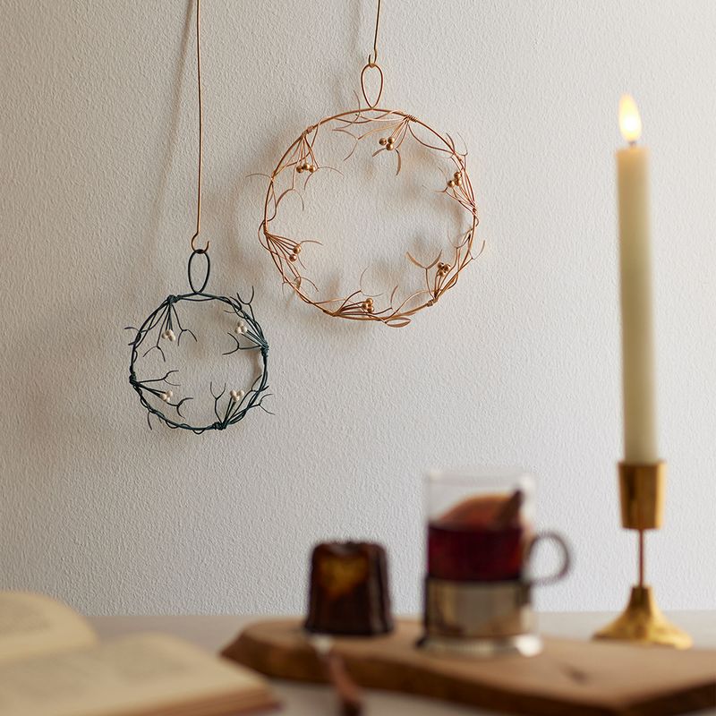 【サイズ】幅9×高さ12cm材質:ブリキ毎年飾れるリース商品の説明幸運をもたらすと言われているヤドリギのリース。生花のヤドリギも素敵ですが、ブリキとワイヤー素材でできているので枯れる心配が無く、毎年飾って楽しめるのがポイント。シンプルですが存在感があり、ワンランク上のデコレーションを楽しめます。帽子や季節のリースが飾れるBRASSのドアフック(303948・303949)を使って壁に掛けてご使用いただけます。素材の情報ブリキ(BLIK)は、錫(TIN)でメッキを施した鉄板で、錆びないように薄いスズの膜で鉄板を処理し、表面を織り上げたものを指します。ブリキ素材は、美しい表面と強固な耐久性を持つため、家具や装飾品などの家庭用品としてよく用いられます。また、オイルやペイントなどで仕上げることで、手触りも良くなり、防水や防塵の性質も備えています。shesayのブリキアイテムは職人によるハンドメイドで生産しています。≪アイアン製品のサイズとペイント方法について≫アイアン製品は工場などで吊るされて順に塗装液の中に漬けて着色する方法や焼付け塗装が行われます。そのため引っ掛けていた箇所が着色できなかったり、一部色ムラが発生する場合があります。また、気泡が入り、そこがはじけた場合などにも小さな剥げになる場合があります。気になる場合には上からペイントしていただくか、リボンなどで隠してご利用ください。1-2cmの誤差や歪み・傾き等がある場合がございます。【はなどんやお取り扱い商品について】■はなどんや掲載商品には、在庫品とメーカーお取寄商品がございます。掲載納期をご参考にされて下さい。即日発送の納期が記載されている商品でも、当店在庫が欠品となった場合には、お取り寄せにてご手配を進めさせていただきます。※コンビニ支払い・銀行振込等、前払い決済でのご注文については即日発送の対象外となります。■他店舗でも販売をしているため、また、メーカーの実在庫欠品等によりご注文後にご用意ができなくなる場合がございます。その場合にはメールにてご案内をさせて頂きます。■分納は承っておりません。一番遅い納期の商品に合わせて発送となります。/【VAR:82770】date20241003花器、リース リース土台(ベース) ワイヤーリース/クリスマス;