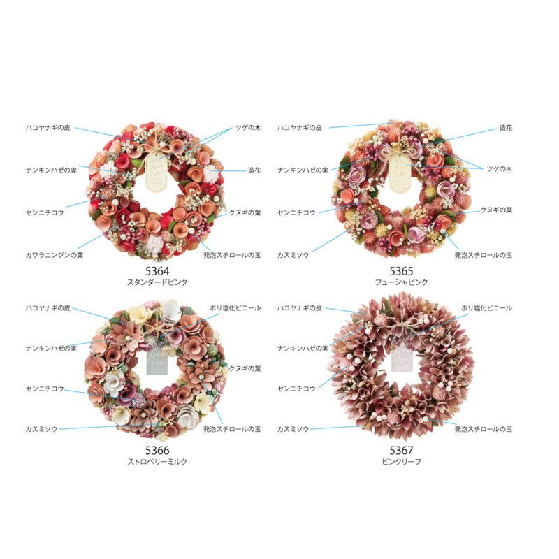 GREENHOUSE/ナチュラルリース SS スタンダードピンク/5364-D【01】 花器、リース フラワーリース・花リース完成品 ドライフラワーリース