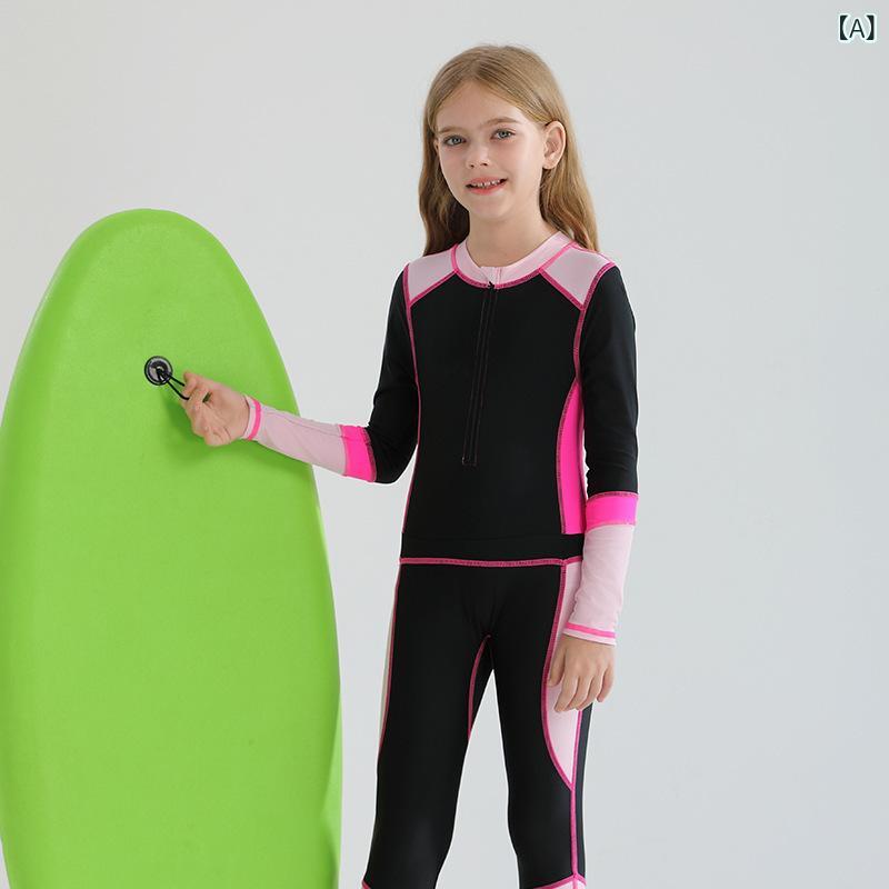水着 キッズ 女の子 ジュニア 子供 長袖 ロングパンツ ラッシュガード UVカット 日焼け防止 保温 防寒 ナイロン ポリエステル プール 海水浴 マリンスポーツ スクール水着