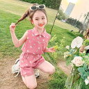 ・カテゴリ: キッズセット・性別: 女児・スタイル: 韓国風・セットタイプ: パンツセット・セット点数: 2点セット・対象年齢: 3~8歳 (身長100~140cm)・袖丈: ノースリーブ・丈: ショートパンツ・主な素材: 綿85%・生地加工: 柔軟加工・厚さ: 薄手・要素: かわいい・安全基準: B類・開閉様式: シングルブレストボタン・対応身長: 90cm、100cm、110cm、120cm、130cm、140cm