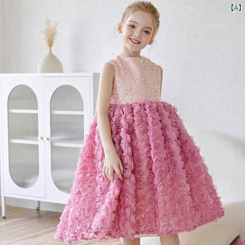 ワンピース 女の子 ジュニア キッズ フォーマルドレス セレモニードレス 立体的な薔薇モチーフ プリンセスライン 発表会 演奏会 コンクール ステージ衣装 キャミソール ノースリーブ チュール ボリュームスカート ポリエステル混紡