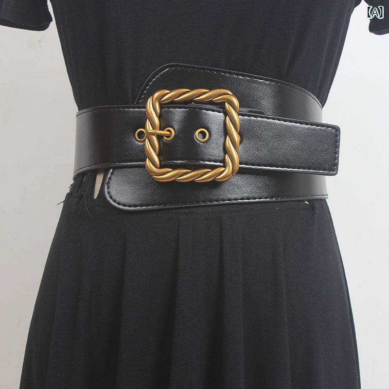 ウエストベルト レディース ワイド幅 フェイクレザー 高級感 装飾 ワンピース ドレス スーツスタイル コート ジャケット きれいめ カジュアル 体型カバー 秋冬 ブラック 黒 キャメル シルバー