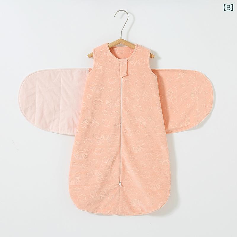 ベビー 寝袋 スリーパー 新生児 赤ちゃん おくるみ スワドル 驚き防止 モロー反射対策 ボアフリース 厚手 あったか 秋冬 羽付き 取り外し可能 ベストタイプ 洗濯可能 快眠 安眠 グッズ
