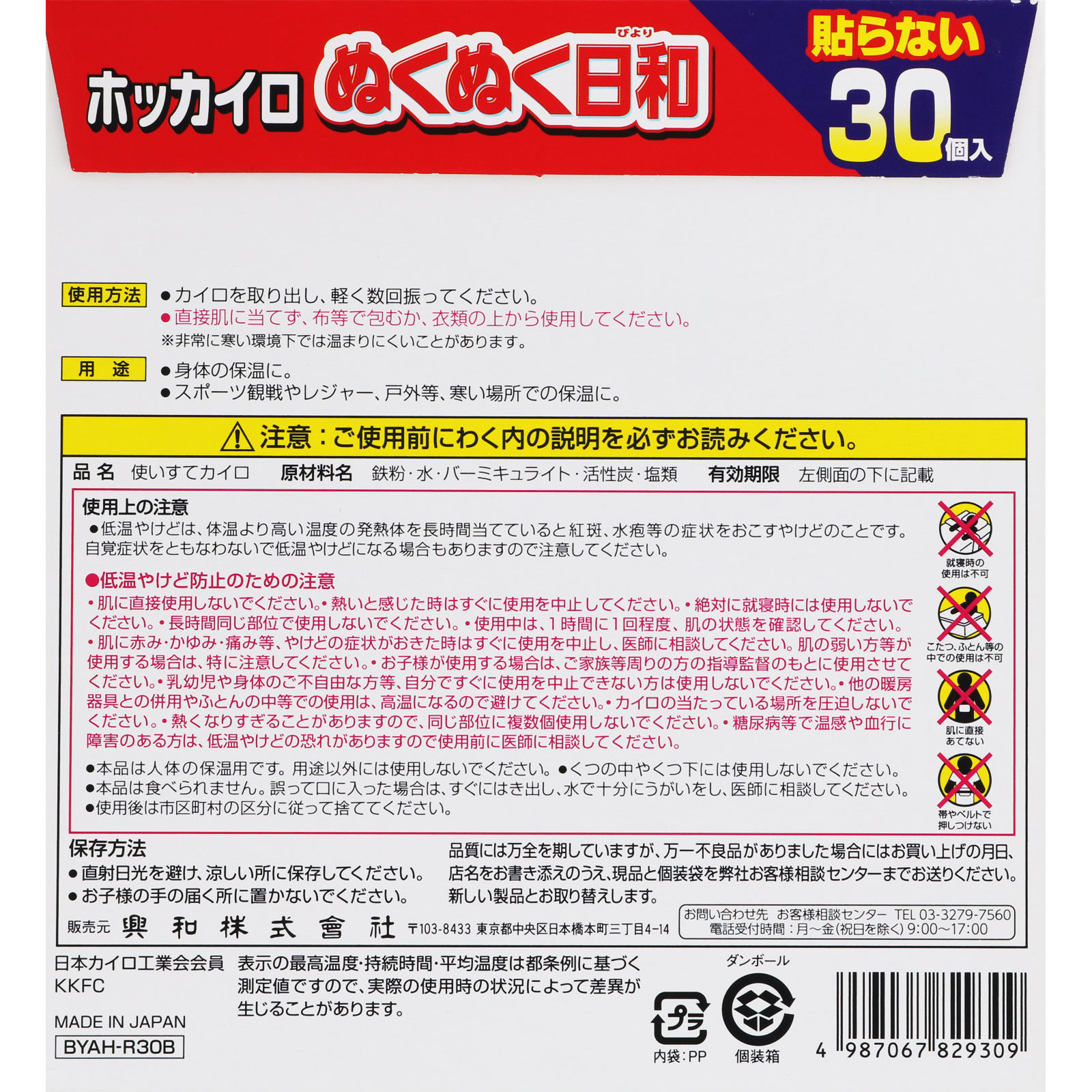 【ケース販売】【8個セット】興和 ホッカイロぬくぬく日和 貼らないレギュラー 30個 (4987067829309-8)
