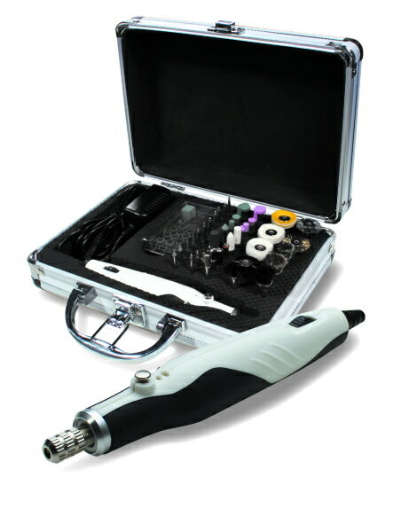 RELIEF ホビールーターセット 先端工具85ピース 80007 陶磁器の彫刻やグラスアートなどを磨く・削る・切る用途に ガラス・石材・金属・樹脂・木材・非鉄金属・装飾品などに 様々な用途に使える先端85ピース付です。 無段階調整機能付で、用途に合った使い方ができます。 コードが細く、本体の取り廻しが楽になります。 収納・持ち運びに便利なハードケース入り。 軸径φ2.35mm専用です。 シャフトロックで簡単交換 オリジナルグラスの作り方、下絵用の絵柄、文字が載った「とらのまき」付き。 ※ご使用前に必ず取り扱い注意事項をお読みいただき、よくご理解の上でご使用ください。※ 付属パーツ ホイル型ブラシ(鋼線・真鍮・ナイロン)各1本 カップ型ブラシ(鋼線・真鍮・ナイロン)各1本 筒型ブラシ(鋼線・真鍮・ナイロン)各1本 ホイール型研磨パフ(セーム革・フェルト・布)各1本 ラバー砥石 2本 軸付フェルトパフ 2本 軸付ドラム 1本 サンダーバンド 20個 ダイヤモンドビット 13本 精密軸付砥石(金属用・木材用) 各5本 シリコンカーバイトドレッサー 1個 切断砥石(金属用)φ24mm 20枚 切断砥石用マンドレル 1本 ドリルビット(φ1mm・φ0.8mm) 各1本 品名、品番 RELIEF ホビールーターセット 先端工具85ピース 80007 定格電圧 AC100V 50/60Hz 定格出力 DC14V 0.4A 最高回転数 6000〜13000min-1(rpm) 本体重量 112g(本体のみ) コード長さ 1.7m(本体・ACアダプタ接続時) 定格使用時間 10分 本体の材質 ABS+TPR 絶縁構造 二重絶縁 本体全長 157mm 重量 675g チャック能力 2.35mm サイズ 224x160x68 付属品 ACアダプタ コレットチャクφ2.35mm 2本(本体装着済1本) メーカー・ブランド 株式会社イチネンMTM・RELIEF