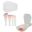 Coolloodaメイクブラシ【5本セット】鏡附人気かわいい化粧筆収納型化粧ブラシ化粧筆携帯用柔らかて毛が密集し便利多機能防塵貝殻収納ケース付き